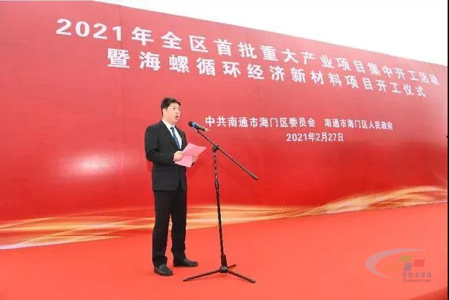 2月27日上午,江蘇省南通市海門區(qū)委、區(qū)政府在海門港新區(qū)海螺新材料項(xiàng)目現(xiàn)場(chǎng)舉行2021年全區(qū)首批重大產(chǎn)業(yè)項(xiàng)目集中開工活動(dòng),動(dòng)員全區(qū)上下堅(jiān)定必勝信心,激發(fā)昂揚(yáng)斗志,大干快干、埋頭苦干、真抓實(shí)干,努力開創(chuàng)施工項(xiàng)目熱火朝天、竣工項(xiàng)目接二連三、儲(chǔ)備項(xiàng)目源源不斷的生動(dòng)局面,為勇當(dāng)“兩爭(zhēng)一前列”領(lǐng)跑者提供強(qiáng)勁支撐。