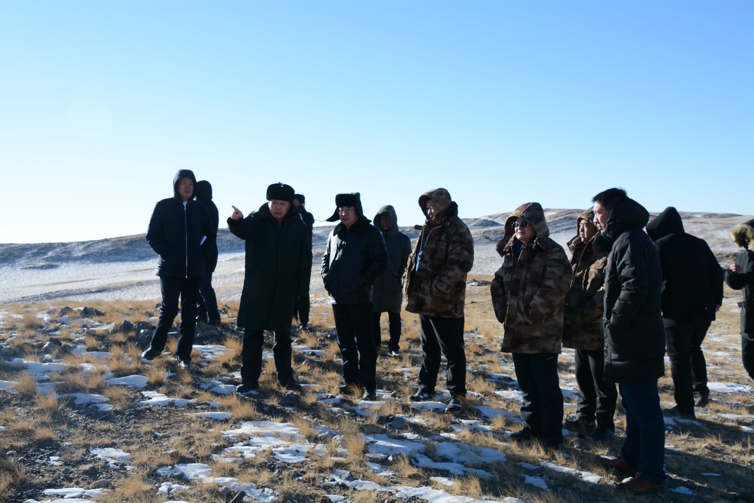 2018年1月19日,內(nèi)蒙古巴彥淖爾烏拉特中旗,以旗長閆永春為首的內(nèi)蒙古自治區(qū)巴彥淖爾盟烏拉特中旗政府代表團一行十二人來到大烏淀石墨礦進行實地考察。當?shù)貧鉁亓阆?0℃,天寒地凍,閆旗長及代表團的各位領(lǐng)導(dǎo)不懼寒風(fēng)詳細聽取了豐域烯碳顧巖董事長對礦區(qū)及規(guī)劃的介紹。